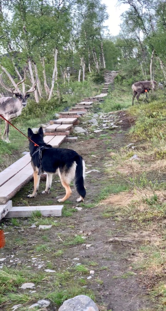 Aamulla lähdettiin kiipeämään Saanan huipulle. Nyt näin poroja tosi läheltä. Kun meinasin olla liian innokas, porot mulkaisivat minua aika pelottavasti ja tajusin pysyä nahoissani.