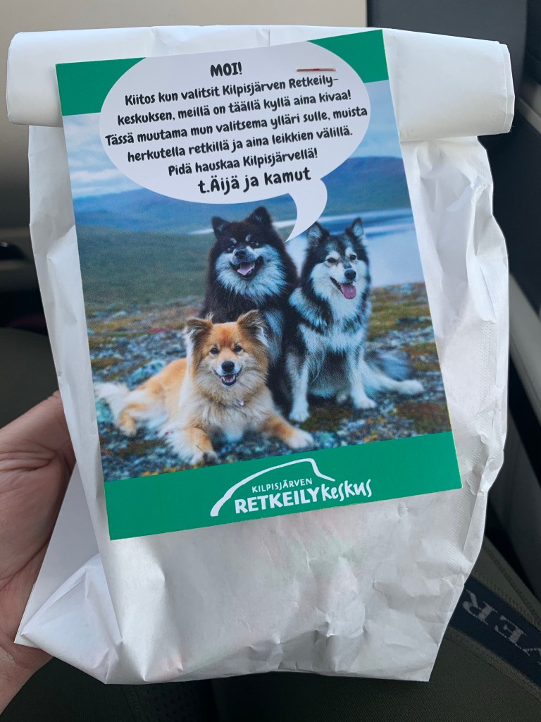 Kilpisjärven retkeilykeskukseen saavuttiin alkuillasta. Tänne koirat ovat tervetulleita ja sain myös ihanan yllätyslahjan! Pidin siitä kovasti .