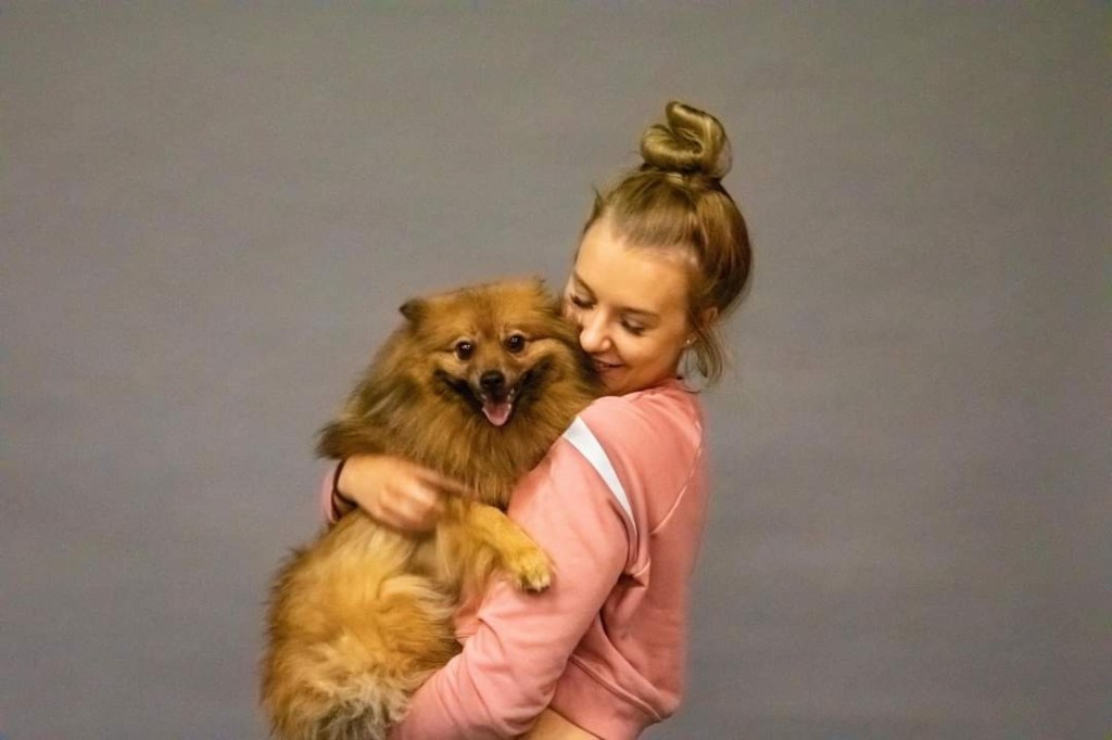 Somen voima oli taas uskomaton ja minulle löytyi tosi mieluisa hoitaja Jutta! Oli paljon kivempaa, kun ei tarvinnut yksin hotellihuoneessa odottaa. Ensin olin kuulema vähän itkenyt äidin perään ja muutenkin ollut rauhaton, mutta lopulta nukahdin Jutan kainaloon. Tässä Jutta oman koiransa kanssa: