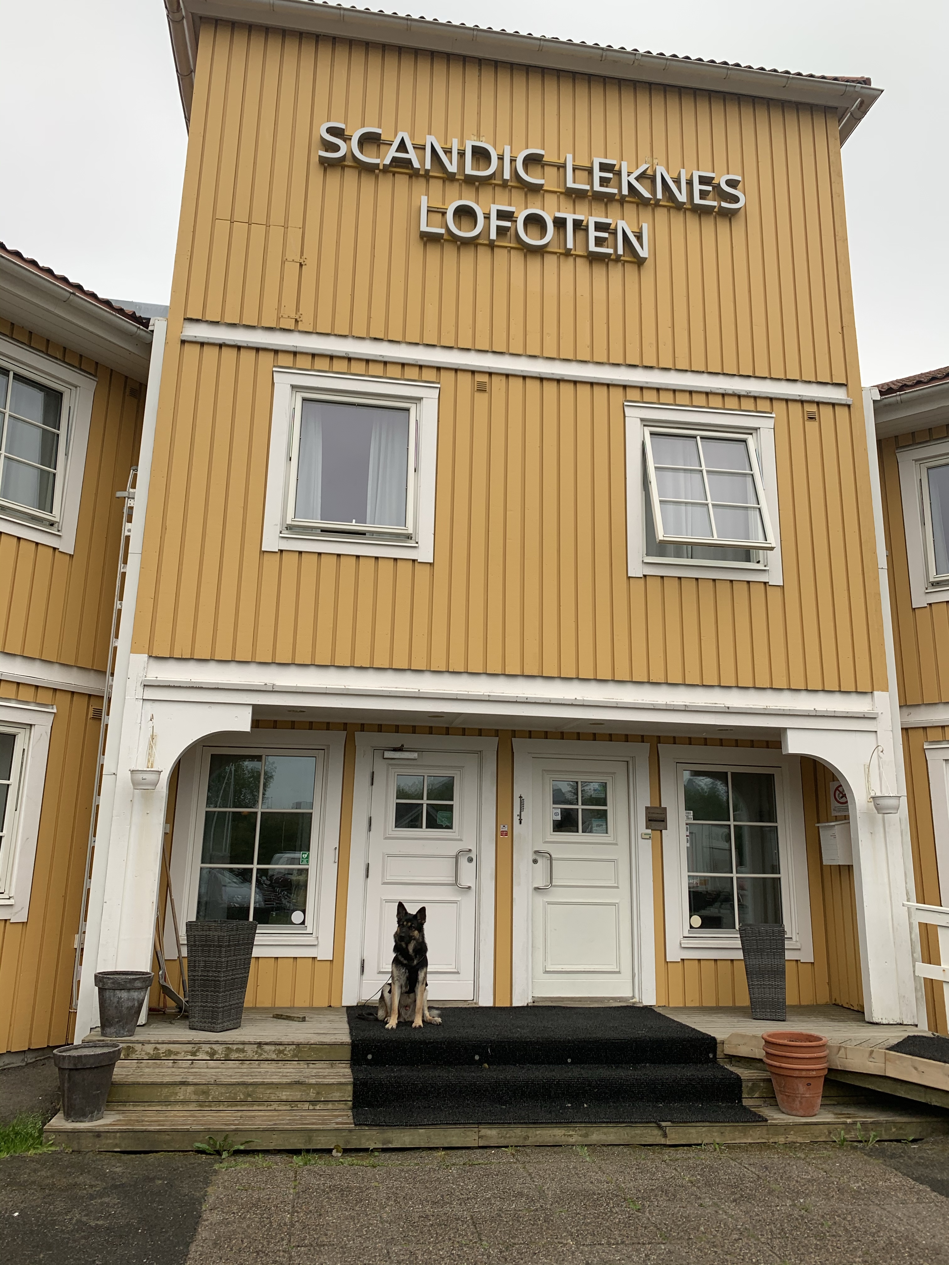 Yksi yö teltassa riitti ja päätettiin seuraavaksi suunnata hotelliin. Valitsimme Scandic Leknesin. Kaikkiin Scandiceihin saa tuoda koiria , mutta Leknesin hotellissa on vain kaksi lemmikkihuonetta. Sesonkiaikaan ne varmasti ovat usein täynnä.